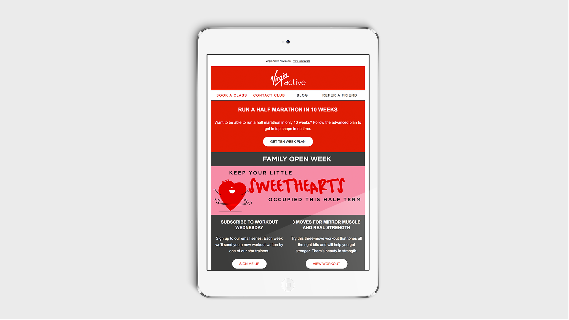 Digital campaign to promote an Open Week in the Virgin Active family gym clubs.