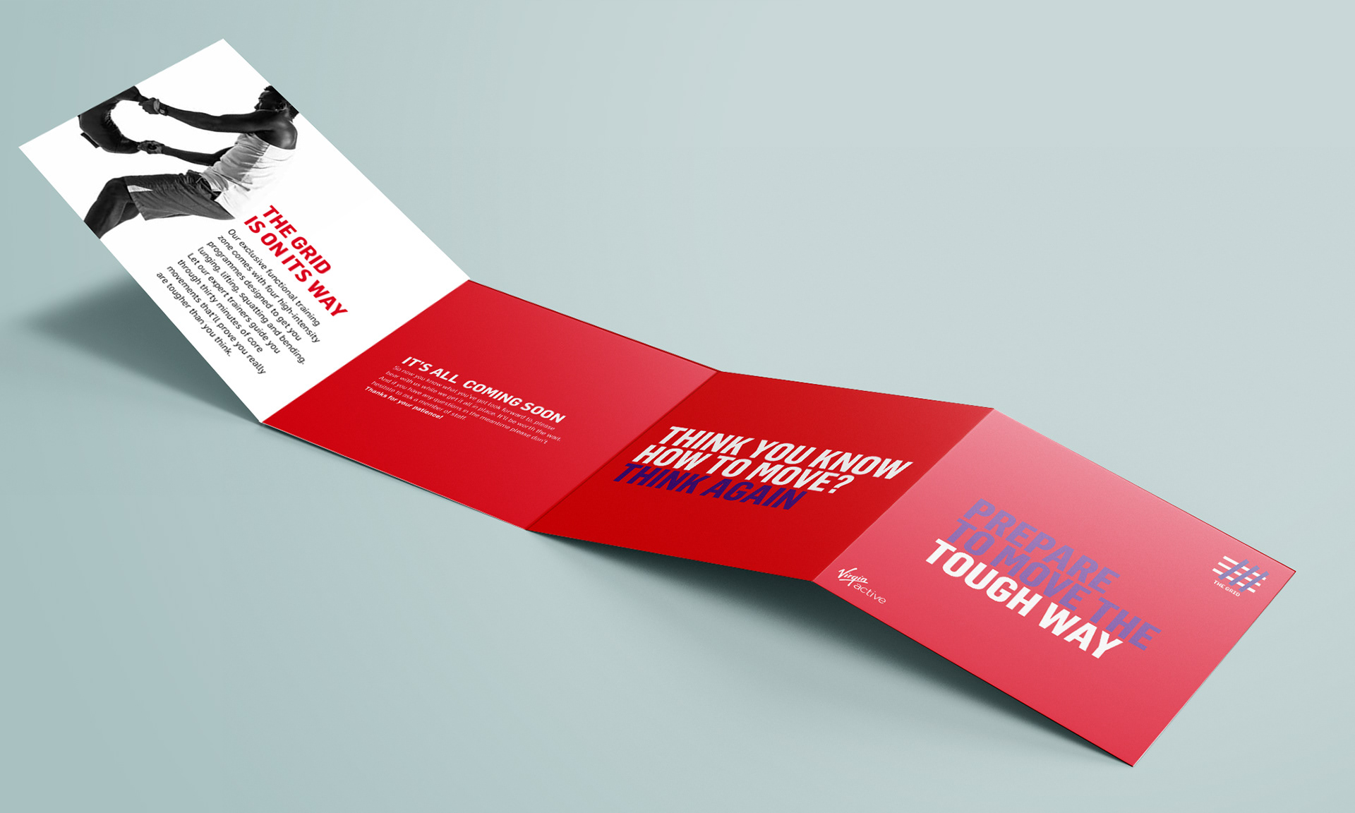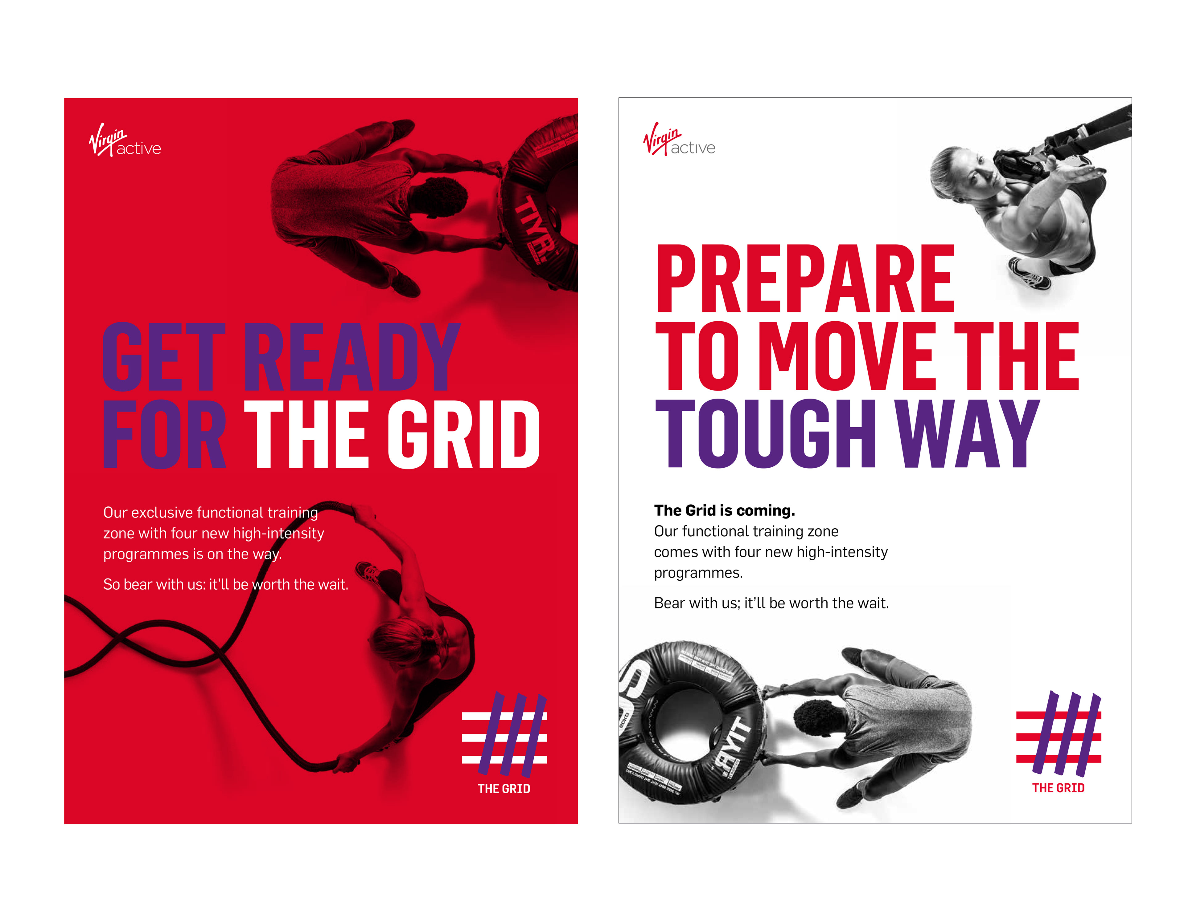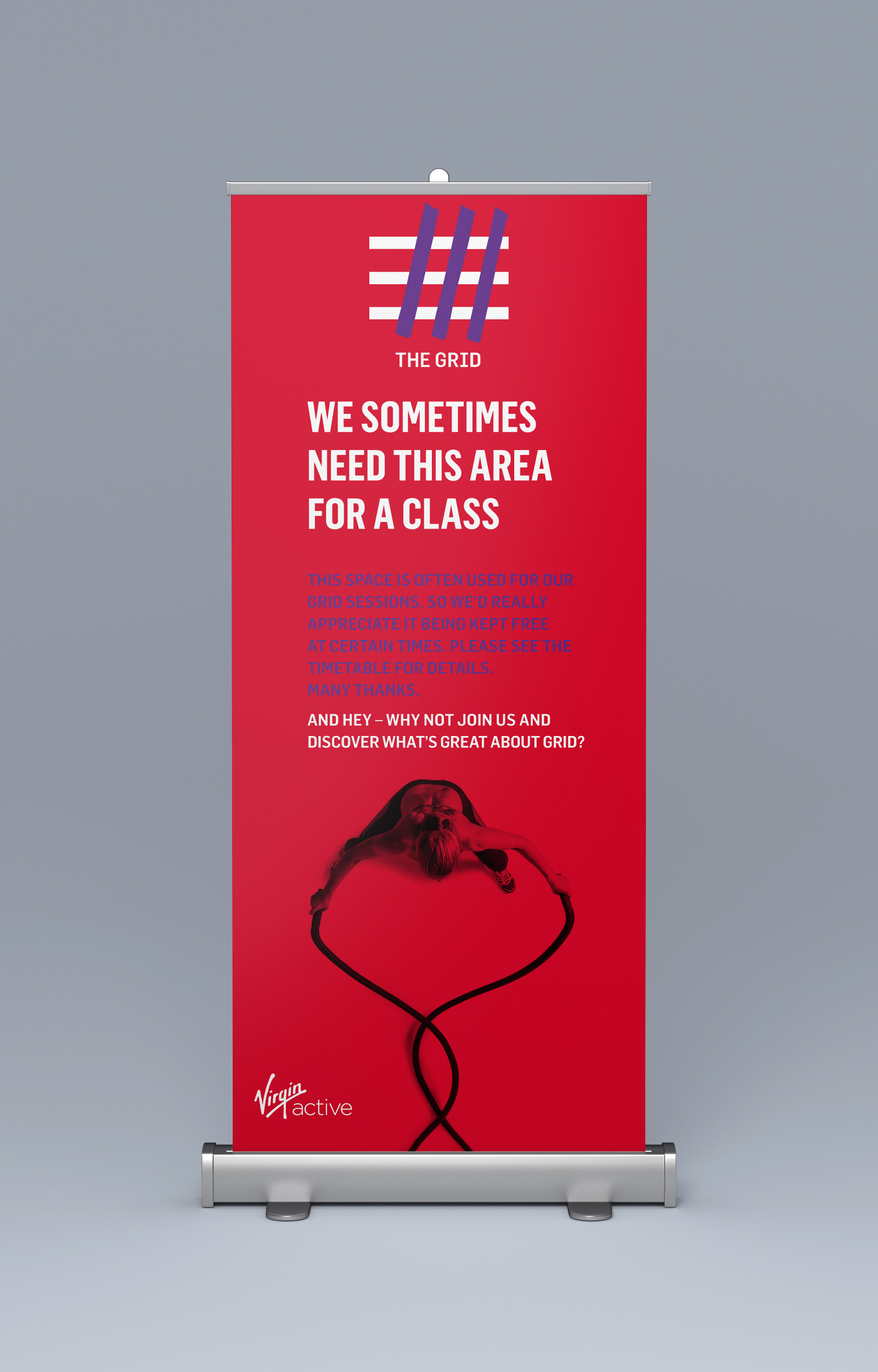 Following brand guidelines for The Grid, an exclusive Virgin Active multi functional training zone, I have designed promotional material for the new installation in some gym clubs.
