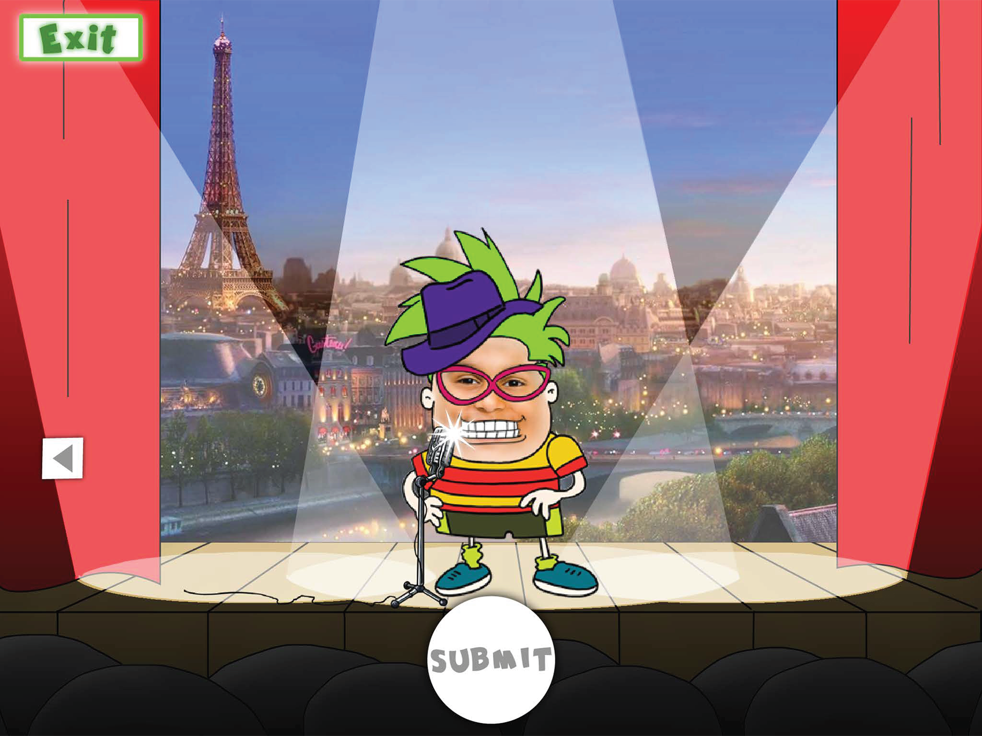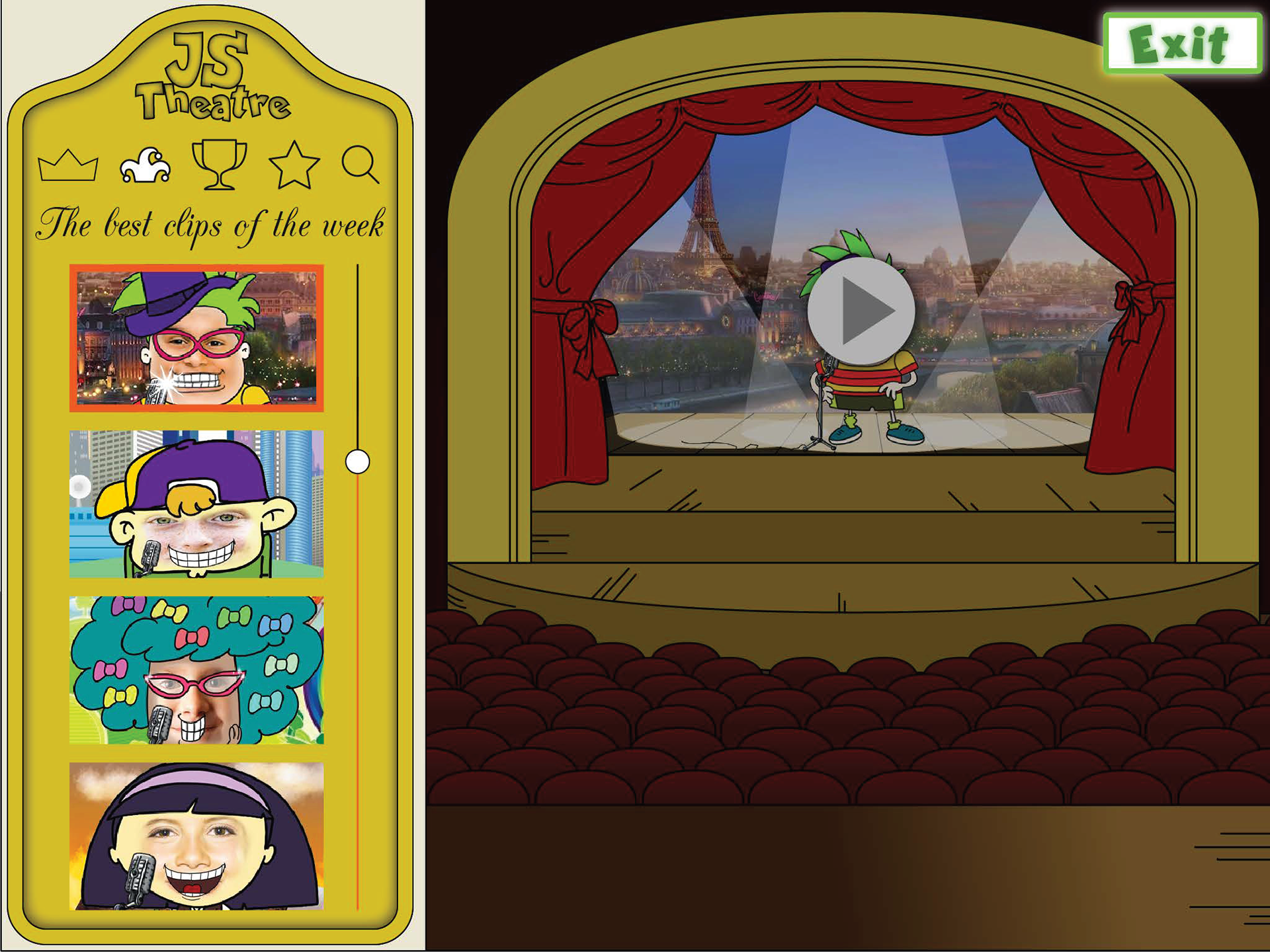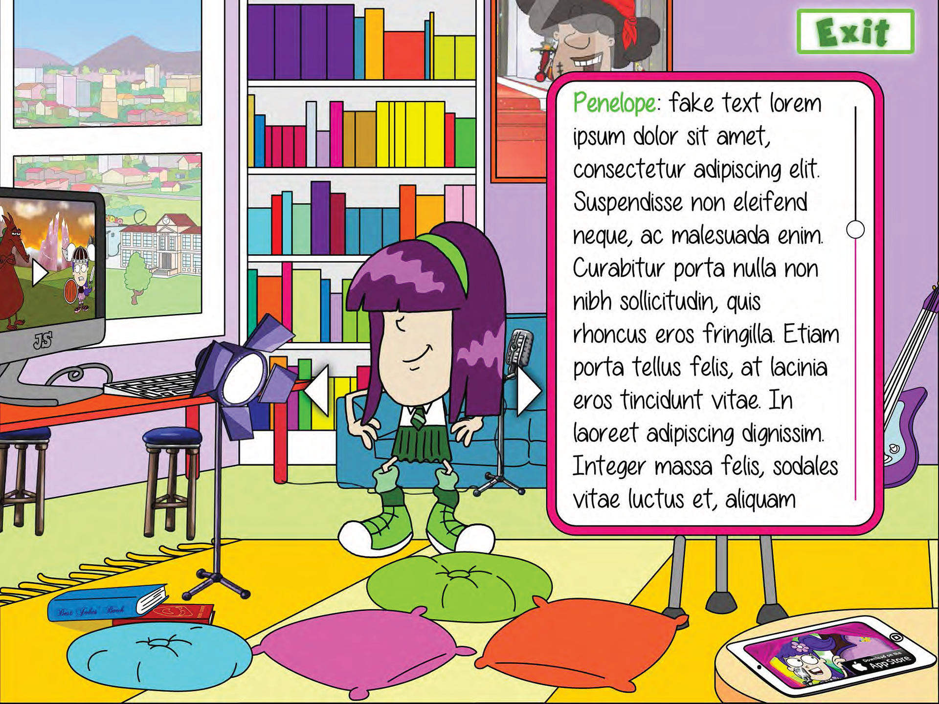 Jokes School Campus. The young user can visit all buildings. Each place has a different function.