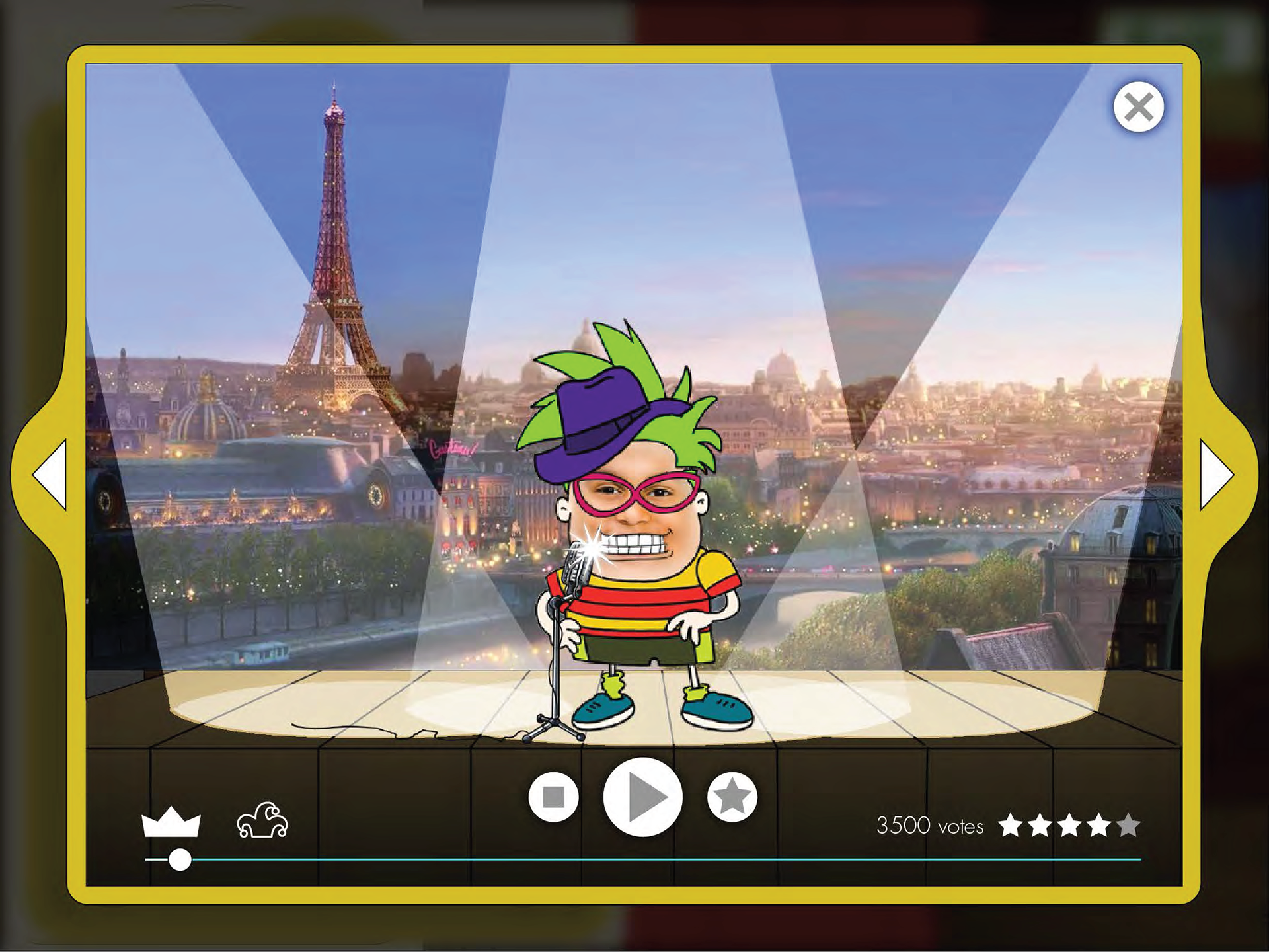 Watch yourself perform on a stage.