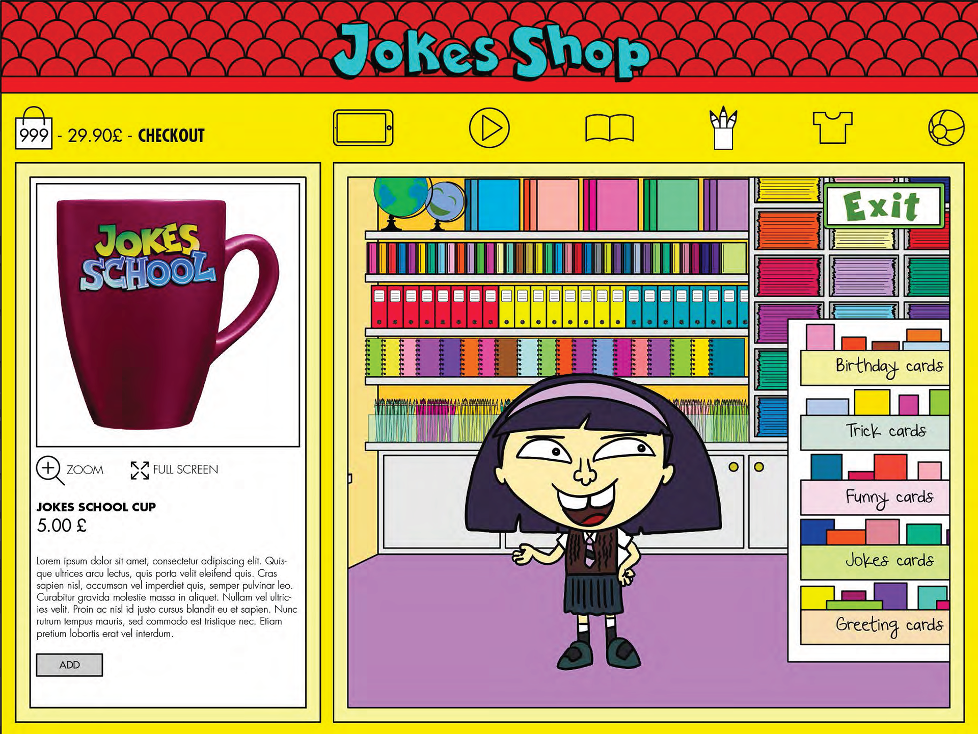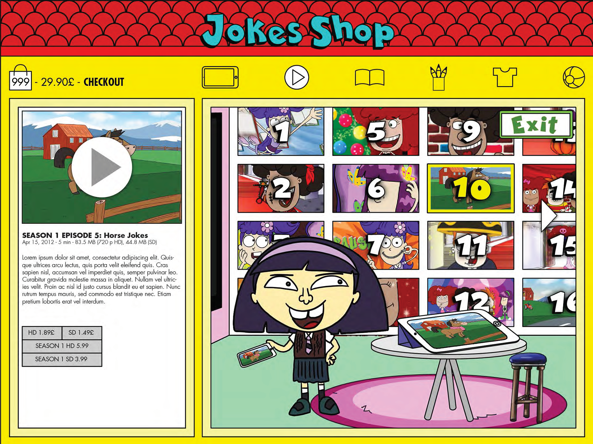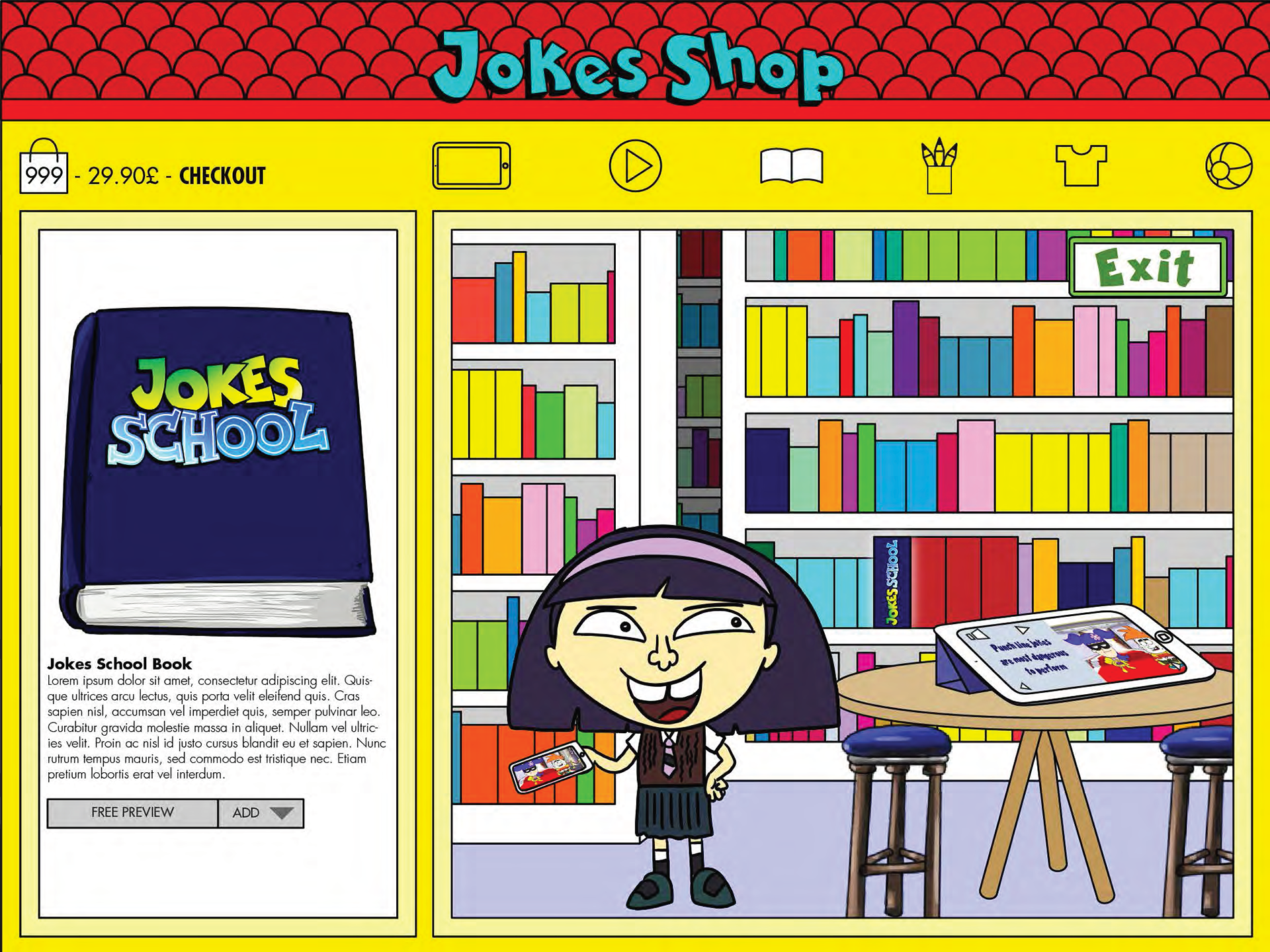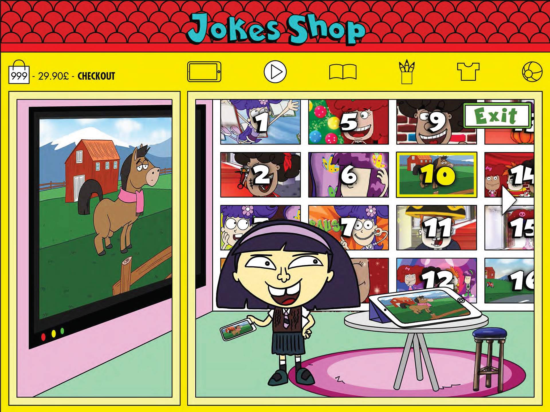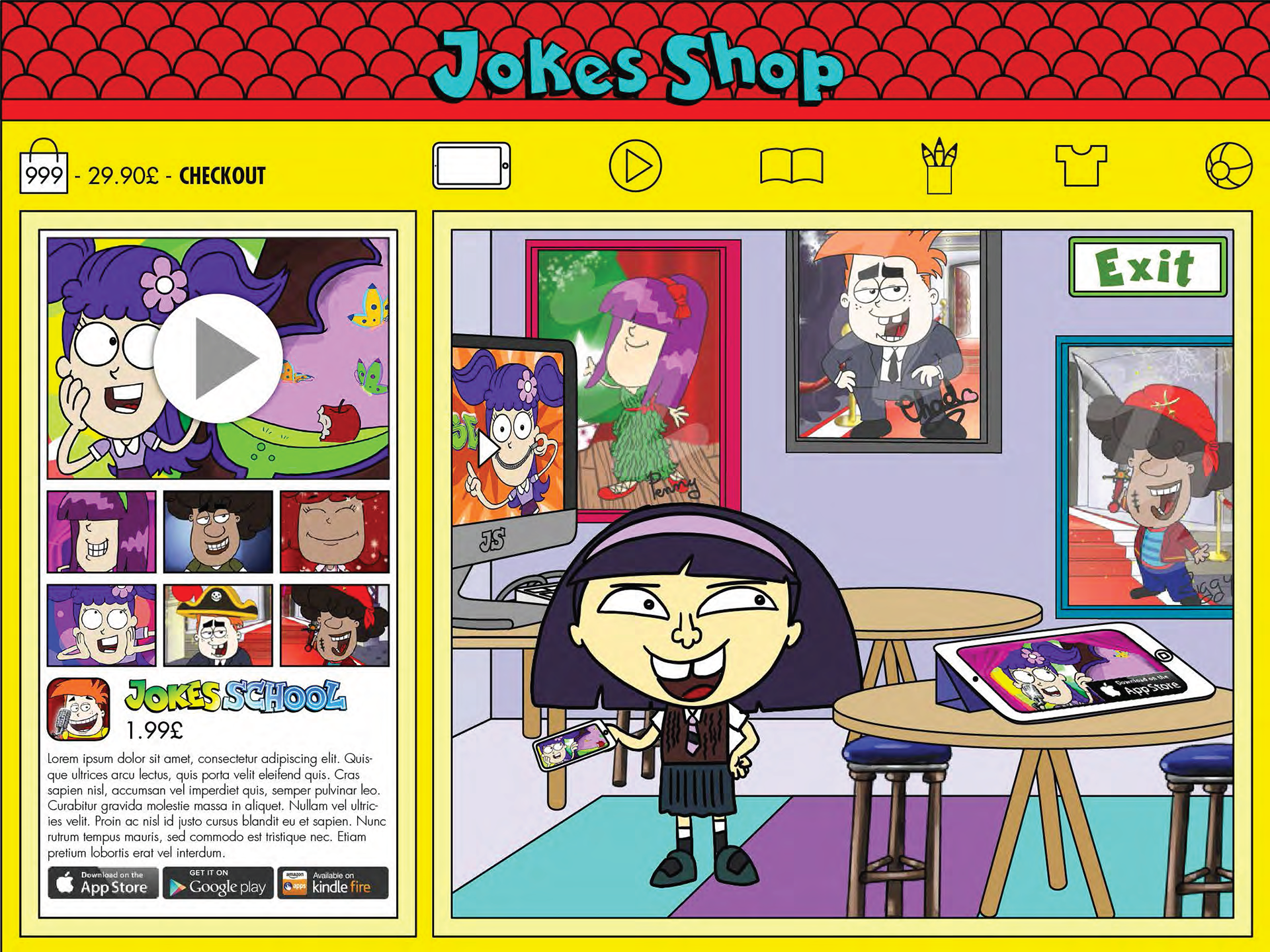 Buy in the Jokes Shop cartoons, apps, books and also some merchandise.