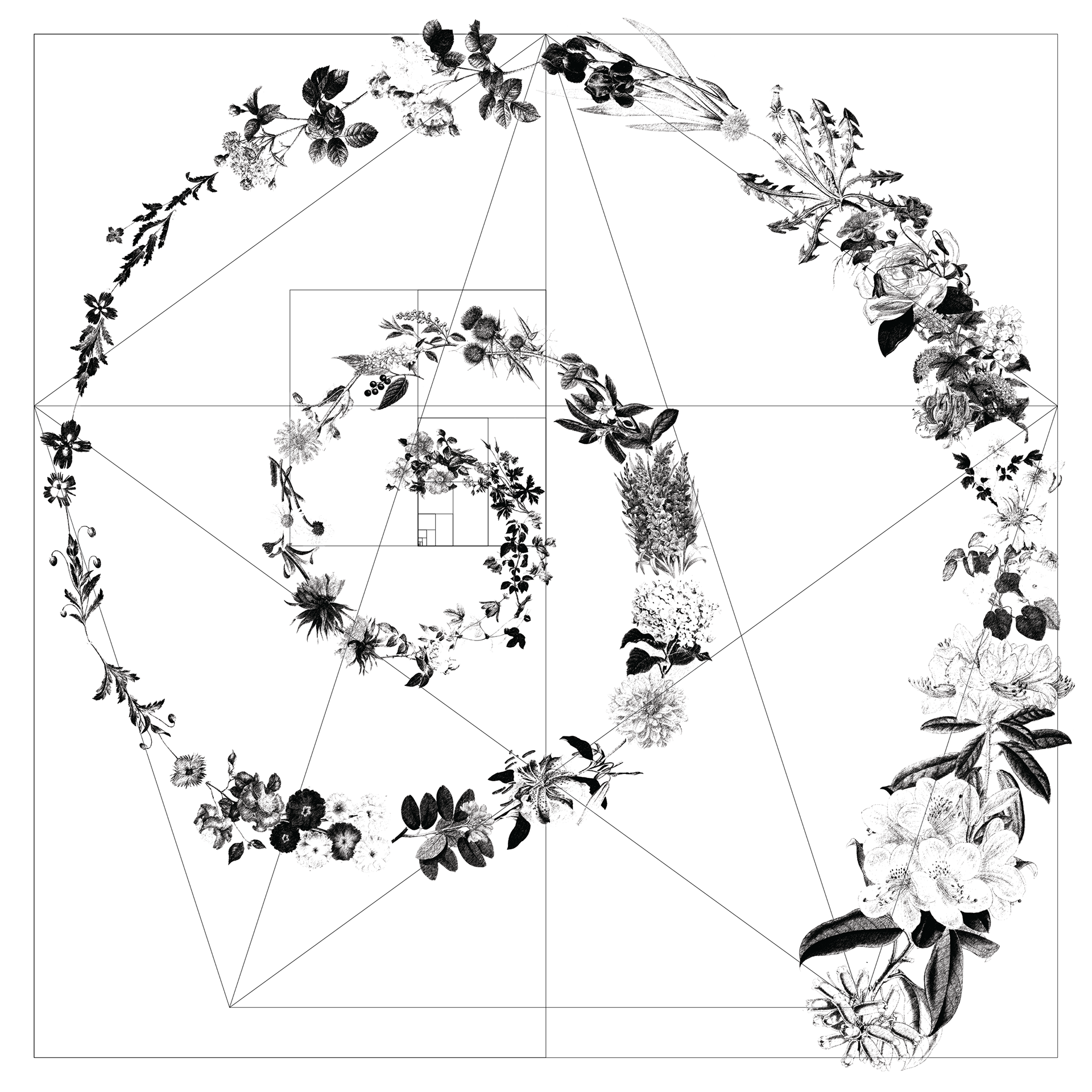The base of the illustration is the Golden Ratio gometric figure: the spiral.