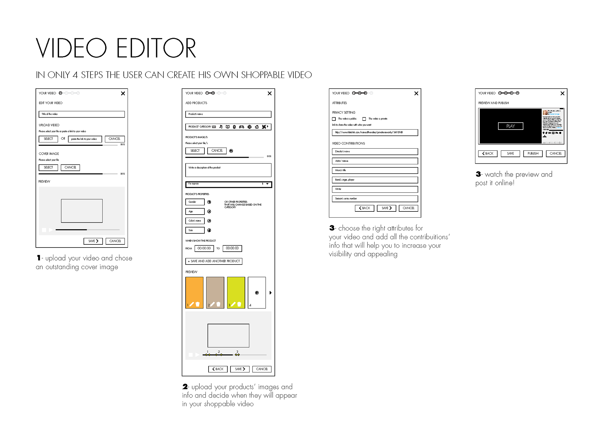 I was involved in this project about the design of a website for the US market, where the user can buy products shown in any video.
